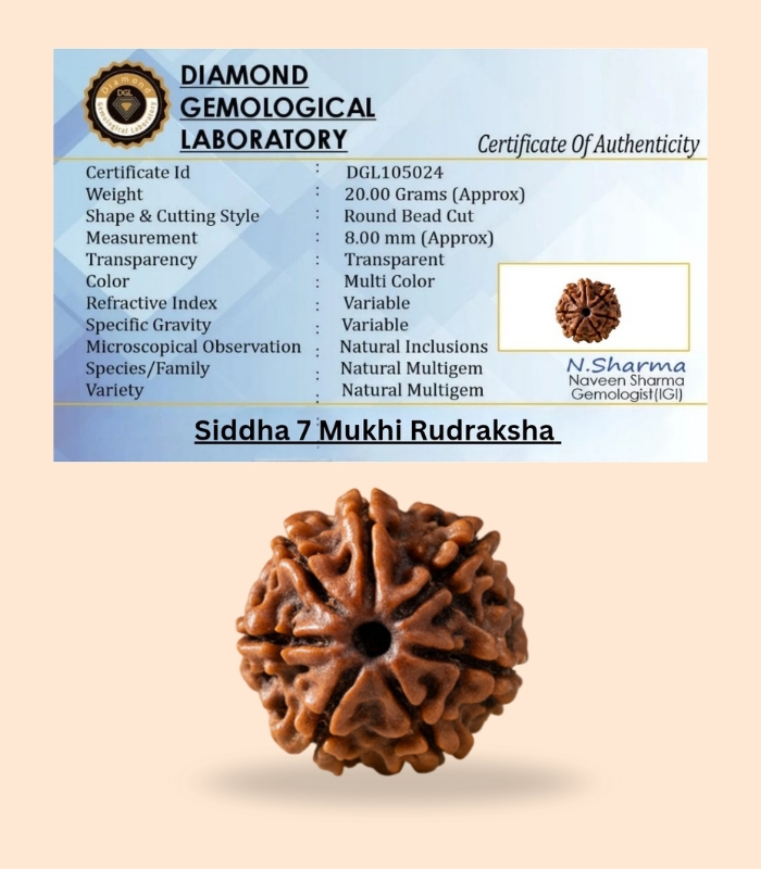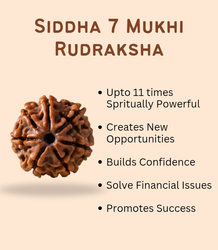 The 7 Mukhi Rudraksha is a sacred bead associated with Goddess Mahalakshmi, the deity of wealth, abundance, and stability. This powerful Rudraksha is known to balance material prosperity with emotional and mental grounding.
