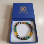 AstroHeal Dhana Yog Bracelet is original 8 mm certified bracelet made of seven different precious crystals. Its more than an accessory—it’s a wearable intention. Crafted for individuals seeking balance, growth, and abundance, this bracelet channels ancient Vedic principles into a modern, elegant form. Every bead of it is selected to reflect the core energies of Dhana (wealth), Yog (aligned living), and Shakti (inner strength), making it a powerful companion for those on a journey toward financial clarity and emotional stability.