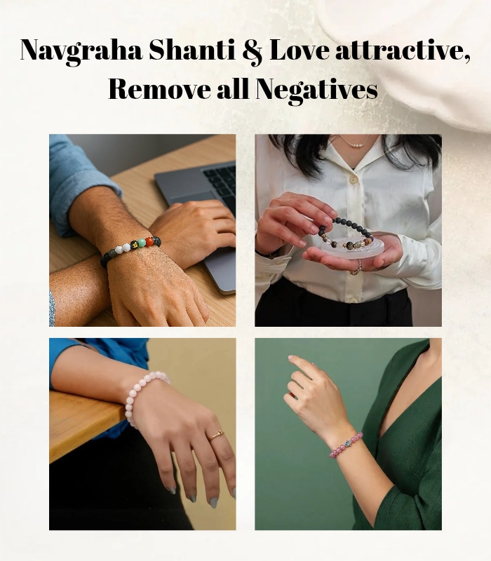 • Navagraha Shanti Bracelet aligns your planetary energies (as per Jyotish/Vedic astrology), reducing obstacles and bringing stability.