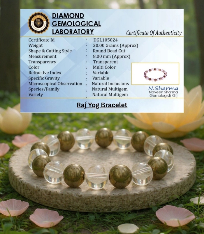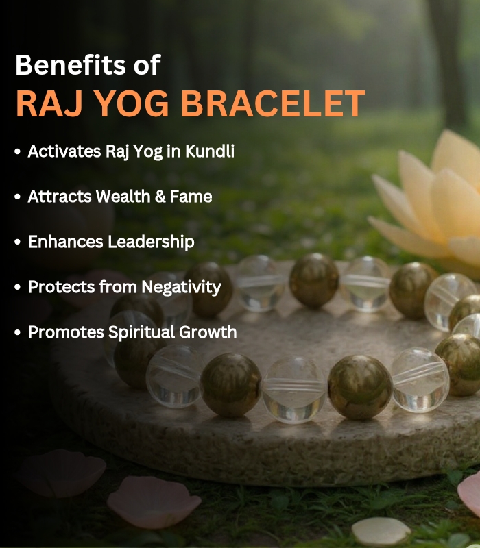 Crafted using 100% authentic, lab-certified natural gemstones, this bracelet works on both the material and spiritual planes, helping you rise with confidence, clarity, and inner authority. Whether your goal is career growth, social recognition, or personal empowerment, the Raj Yog Bracelet acts as a constant energetic support system.