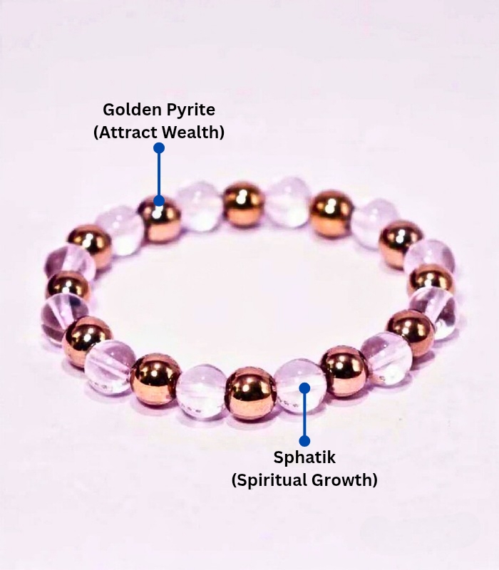 Raj Yog Energy ActivationGolden Pyrite & SphatikSuccess & Authority BoosterMantra-Energized Bracelet
