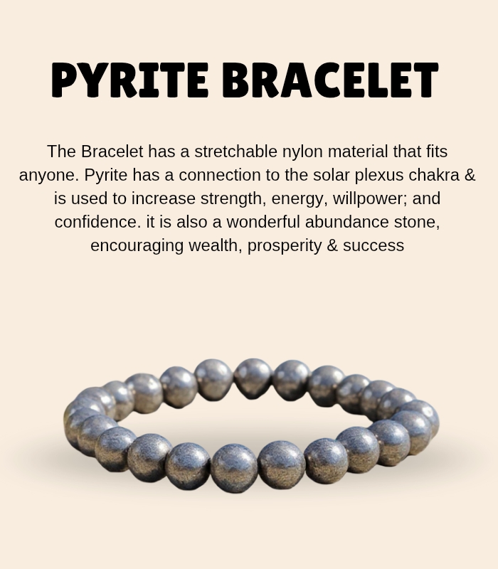 Its metallic, earthy appearance makes it a versatile accessory—perfect for daily wear, office settings, or casual outings—while continuously channeling Pyrite’s powerful energy into your life.