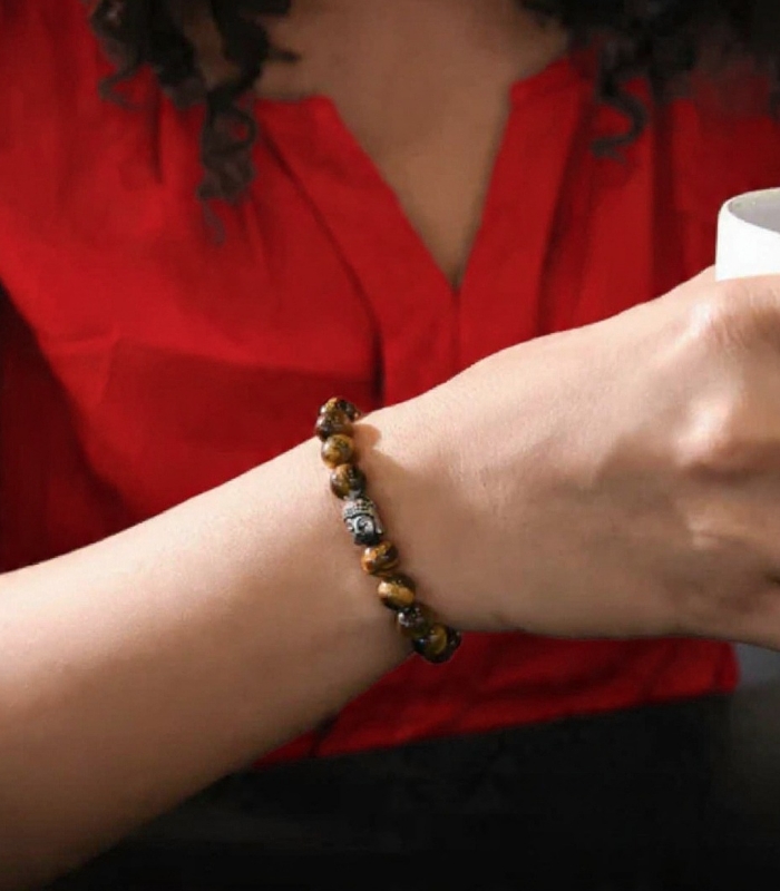 Tiger Eye – The Celeb Bracelet is a bold and stylish accessory crafted with rich golden-brown Tiger Eye beads and accented with a serene Buddha charm. Designed to radiate confidence, strength, and calm energy, this bracelet blends fashion with purpose.